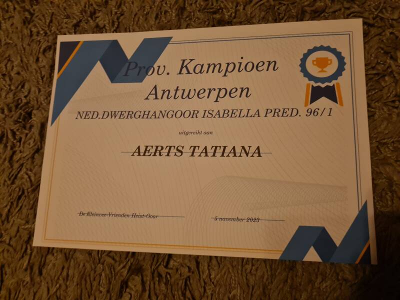 Nederlands hangoordwerg isabella 96p 1ste plaats